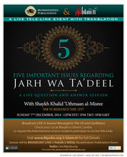 [Audio] Five Important Issues Regarding Jarh wa Ta`deel / by Shaykh Khalid `Uthmaan al-Misree
